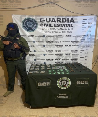 En la zona centro del municipio de Villa de la Paz, efectivos de la GCE detectaron a un supuesto vendedor de droga de un grupo criminal, quien se identificó como José "N" de 40 años de edad, descubierto con 24 dosis de la droga sintética conocida como "cristal" y siete bolsas con marihuana, lo que derivó a su detención inmediata.