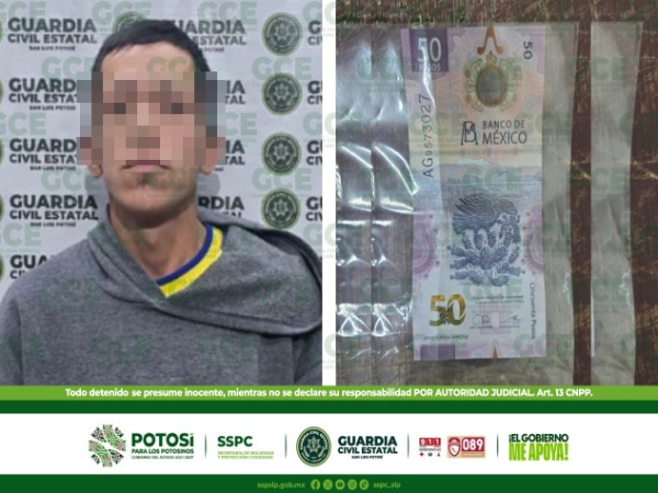 Patrullajes preventivos, desdoblados por la Guardia Civil Estatal, derivaron en la detención de un hombre, señalado del probable delito de cohecho, en la colonia Satélite, perteneciente a la capital potosina.
