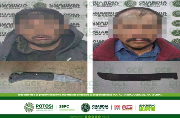 Agentes de la Guardia Civil Estatal (GCE) detuvieron a dos hombres tras los operativos efectuados en la zona metropolitana; a los individuos se les aseguraron armas punzocortantes con las que deambulaban.