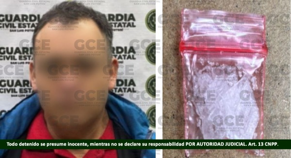 Al presunto, se le aseguró una dosis de "cristal", informándose que cuenta con antecedentes por delitos contra la salud, robo de vehículo y portación de arma de fuego, por lo que fue puesto a disposición de la Fiscalía General del Estado por sus actividades que afectan la convivencia y bienestar de nuestra comunidad.