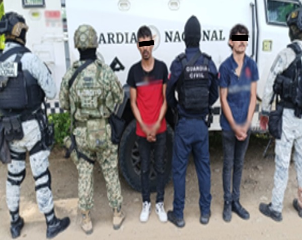 -En Buenavista Tomatlán, elementos de GN, Ejército Mexicano y Policía Estatal detuvieron a dos hombres generadores de violencia y colaboradores de una célula delictiva dedicada a la extorsión de productores de limón, distribución de drogas, acopio de armas y homicidios, , les aseguraron armamento, diversas dosis de droga y una motocicleta.