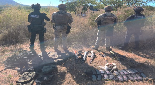 En Elota, se aseguró una barra de material explosivo, 69 cilindros metálicos para artefactos explosivos improvisados vacíos y 900 cartuchos.
