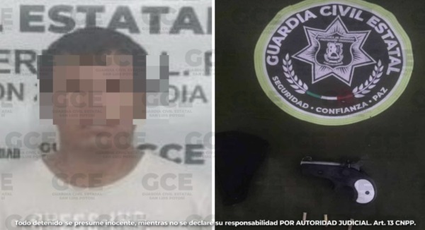 Nuestros agentes de la Guardia Civil Estatal, desplegaron un operativo de seguridad en el Barrio Llanitos, en el municipio de Ciudad Fernández, donde fue detenido Miguel "N" de 29 años, luego de que se le asegurara un arma de fuego, abastecida con tres cartuchos útiles, lo que derivó a su puesta a disposición ante la Fiscalía General de la República.