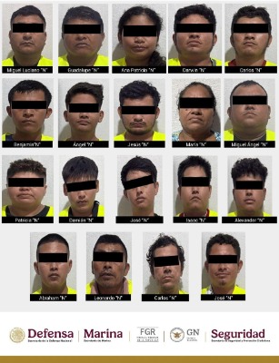 Derivado de trabajos de inteligencia e investigación, en Jalapa, Tabasco, elementos de la Secretaría de Seguridad y Protección Ciudadana (SSPC), Secretaría de la Defensa Nacional (Defensa), Secretaría de Marina (Semar), Fiscalía General de la República (FGR), Guardia Nacional (GN) y la Fiscalía General del Estado (FGE) detuvieron a Jorge Armando "N", identificado como jefe de plaza de una célula delictiva, junto a 19 personas más, a quienes se les aseguró armamento, vehículos y diversas dosis de droga.
