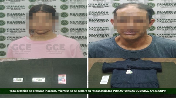 En diferentes acciones, oficiales de la GCE detuvieron a un hombre y una mujer, denunciados por el probable delito de robo a comercio. En el primer hecho, los oficiales de la GCE arribaron a una tienda de abarrotes, en la capital potosina, donde detuvieron a América "N" de 19 años, quien trató de huir con 500 pesos en efectivo.
