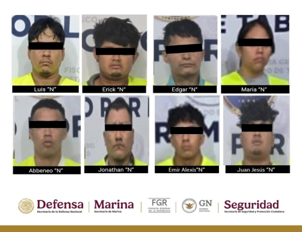 Derivado de trabajos de inteligencia e investigación, en Tabasco, elementos de la Secretaría de Seguridad y Protección Ciudadana (SSPC), Secretaría de la Defensa Nacional (Defensa), Secretaría de Marina (Semar), Fiscalía General de la República (FGR) y Guardia Nacional (GN), junto con Secretaría de Seguridad y Protección Ciudadana (SSyPC) y Fiscalía General del Estado, ambas de Tabasco y Policía Municipal de Jalpa de Méndez, en dos acciones operativas realizadas en los municipios de Macuspana y Jalpa, detuvieron a ocho personas, a quienes les aseguraron armas y droga.