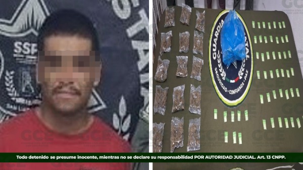 Un dispositivo efectuado en la carretera a Rioverde, a la altura del ejido de La Fortaleza, en el municipio de Tamuín, permitió la detención de Marcos "N" de 29 años, quien presuntamente llevaba consigo 50 dosis de "cristal" y 15 bolsas de marihuana.