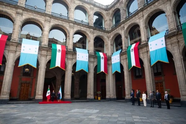 A la mandataria de la República de Honduras, la acompañaron el secretario de Relaciones Exteriores, Javier Efraín Bú Soto; el secretario particular de la presidenta, Héctor Manuel Zelaya Castro; y la embajadora de Honduras en México, Sonia Leticia Cruz Lozano.