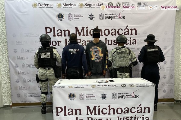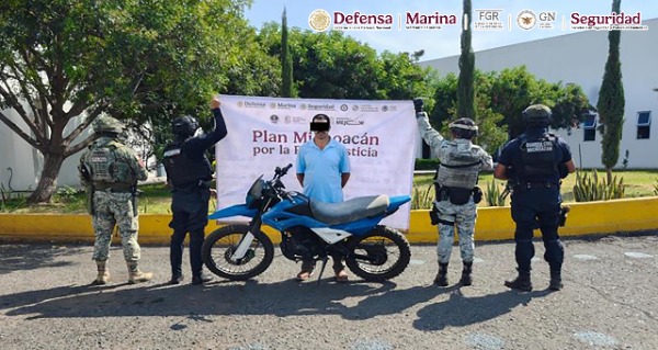 Resultado de las acciones operativas del "Plan Michoacán por la Paz y la Justicia", elementos de la Secretaría de la Defensa Nacional (Defensa), Guardia Nacional (GN), en coordinación con la Secretaría de Marina (Semar), Fiscalía General de la República (FGR), Secretaría de Seguridad y Protección Ciudadana (SSPC), junto con la Secretaría de Seguridad Pública (SSP) y Fiscalía General del Estado (FGE) detuvieron a ocho personas y aseguraron dos armas de fuego, nueve vehículos e inhabilitaron dos campamentos clandestinos.