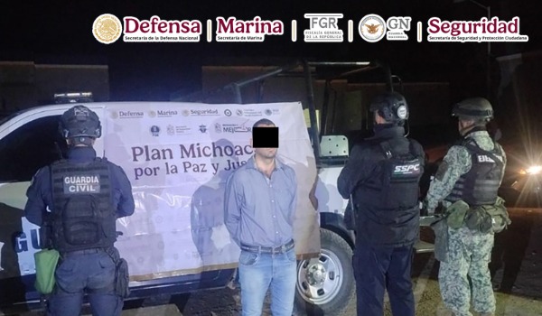 Resultado de labores del "Plan Michoacán por la Paz y la Justicia", elementos de la Secretaría de la Defensa Nacional (Defensa) y Guardia Nacional (GN), en coordinación con la Secretaría de Marina (Semar), Fiscalía General de la República (FGR) y Secretaría de Seguridad y Protección Ciudadana (SSPC), junto con la Secretaría de Seguridad Pública (SSP) y Fiscalía General del Estado (FGE), detuvieron a dos personas, aseguraron 120 cartuchos y un vehículo.