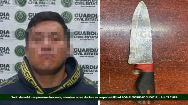 Elementos de la Guardia Civil Estatal acudieron a una farmacia en la colonia El Sauzalito, donde se detuvo en flagrancia a Ricardo "N" de 27 años, asegurándole un cuchillo de cocina de 31 centímetros de longitud.