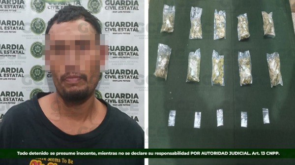 Al momento de la detención de José "N" de 32 años, se le decomisaron 10 bolsas con marihuana y cinco dosis de "cristal". Lo anterior se llevó a cabo como resultado de un operativo coordinado en el municipio señalado, tras labores de investigación e inteligencia desarrolladas por nuestras fuerzas del orden.
