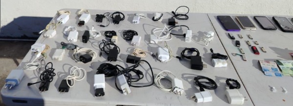 En Culiacán, se aseguraron cinco teléfonos celulares, 31 cargadores para teléfonos, 39 objetos punzocortantes, 10 memorias USB y dinero en efectivo.