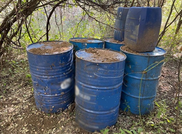 En otra acción en el mismo municipio, se localizaron e inhabilitaron tres áreas de concentración de material diverso para la fabricación de drogas sintéticas, se aseguraron 2,905 litros de sustancias para la elaboración de metanfetamina. La afectación económica a la delincuencia organizada es de 57 millones de pesos.