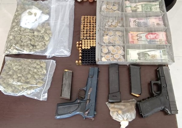 -En Bochil, elementos de la Guardia Nacional (GN), Ejército Mexicano, Fiscalía y Policía Estatal catearon un inmueble, detuvieron a un hombre, aseguraron dos armas cortas, tres cargadores, 126 cartuchos, dosis de marihuana, 26 teléfonos celulares, cinco computadoras, un vehículo y cinco motocicletas con reporte de robo.