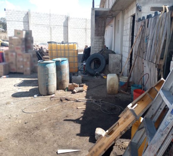 ? En Tlaxcala, elementos de la FGR, Semar, Policía Estatal y Municipal catearon un inmueble, aseguraron 1,850 litros de hidrocarburo, 171 neumáticos, un tambo con 1,000 litros de solvente, 150 cubetas con grasa sintética, 27 tambos con 200 litros de aceite para motor cada uno y 344 cajas de aceite para motor
