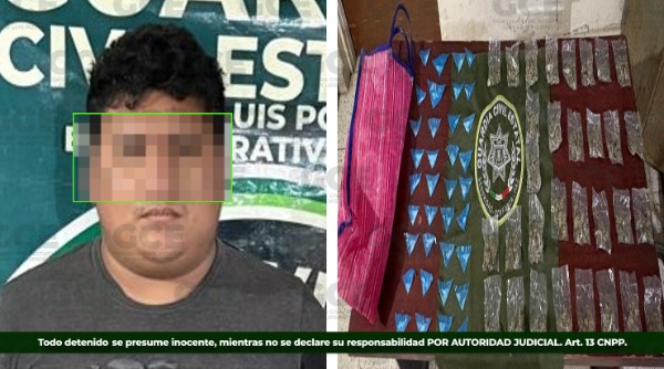 El detenido fue identificado como Fabricio "N" de 19 años, quien fue asegurado en posesión de diversas dosis de sustancias ilícitas, presuntamente destinadas para su distribución.