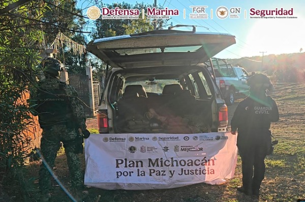 Como parte de las acciones del Plan Michoacán por la Paz y la Justicia, elementos de la Secretaría de la Defensa Nacional (Defensa) y Guardia Nacional (GN), en coordinación con la Secretaría de Marina (Semar), Fiscalía General de la República (FGR) y Secretaría de Seguridad y Protección Ciudadana (SSPC), junto con autoridades locales, detuvieron a tres personas, aseguraron 36 armas de fuego, 1,086 cartuchos, 61 cargadores, un artefacto explosivo improvisado, nueve vehículos y equipo táctico.