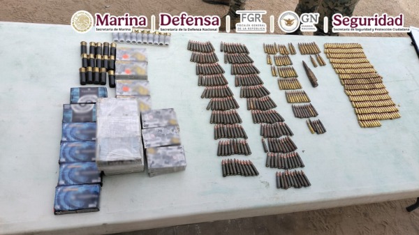 Posteriormente, se ubicó y desmanteló un campamento clandestino donde se encontraron vehículos, así como armamento, municiones, ropa, calzado táctico y material diverso.