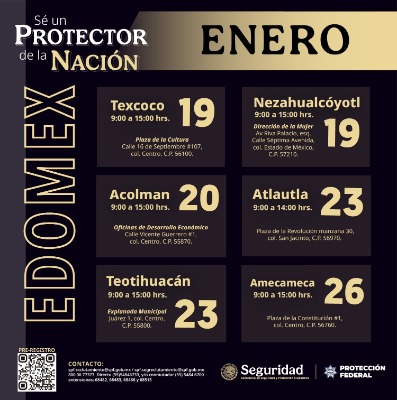 Para mayor información, se invita a la población a seguir las redes sociales del SPF en facebook @Proteccionfederal1 y en X como @spf_sspc, o comunicarse a los teléfonos 800 00 77377 (lada sin costo) y 55 54846700 extensiones: 68482, 68483, 68486 y 68515.