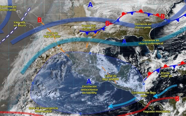El Servicio Meteorológico Nacional (SMN) indicó que, de manera simultánea, el ingreso de humedad proveniente del Océano Pacífico incrementará la probabilidad de precipitaciones y tormentas en los estados del sur y occidente.