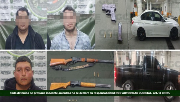 Como resultado de los patrullajes preventivos que la Guardia Civil Estatal mantiene de forma permanente en distintas zonas del estado, se logró la detención de varias personas por la presunta portación de armas de fuego, fortaleciendo con ello las acciones de seguridad y prevención del delito.