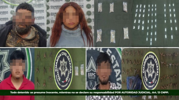 Como parte de las acciones de inteligencia y combate frontal al narcomenudeo y a los delitos de alto impacto, la Guardia Civil Estatal llevó a cabo diversas detenciones y aseguramientos en distintos puntos del estado, fortaleciendo las estrategias de prevención y seguridad.