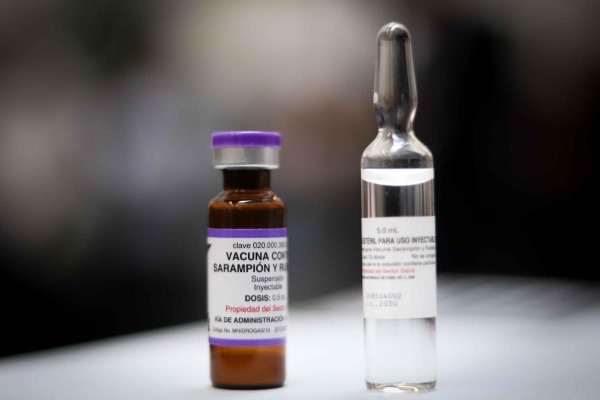 Muestra de una vacuna contra el sarampión y rubéola en una jornada de vacunación en el Senado de la República.