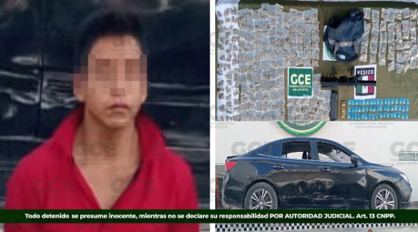 Como resultado de los trabajos preventivos, enfocados en preservar la paz de las familias de la región Huasteca, un hombre, presuntamente vinculado a la venta de estupefacientes, fue detenido en el municipio de San Martín Chalchicuautla. Se trata de Miguel "N" de 22 años, asegurado con más de un kilogramo de marihuana, distribuido en 382 bolsas, además de 51 dosis de "cristal", un fusil de asalto, abastecido con un cargador que contenía 11 cartuchos útiles.