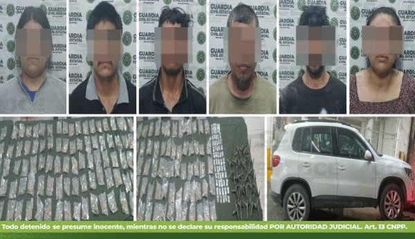 Como parte del combate frontal a la delincuencia, la Guardia Civil Estatal (GCE), capturó a una presunta célula criminal que operaba en la región a quienes se les aseguró droga y armas prohibidas. Dos de los detenidos presuntamente están activos en la privación ilegal de la libertad y desaparición de personas.