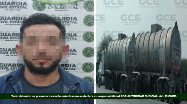 Adicionalmente, la División Caminos de la GCE detuvo a Omelio "N", de 35 años de edad, a la altura del municipio de Villa Hidalgo, quien conducía un tractocamión marca Kenworth, acoplado a dos autotanques cargados con aproximadamente 66,000 litros de hidrocarburo, del que no pudo comprobar su procedencia legal.