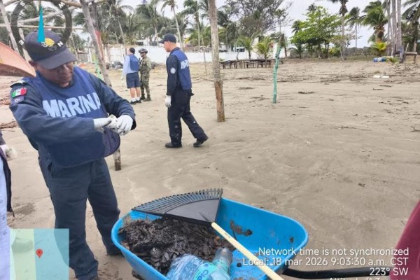 De manera paralela, personal de Petróleos Mexicanos (Pemex) ejecutó labores de limpieza en diversos puntos de la costa veracruzana. En Playa Jicacal operaron cuatro frentes de trabajo con 25 personas cada uno, supervisados por técnicos especializados; en Playa Linda se desplegaron dos frentes de 20 trabajadores; mientras que en Playa Barrillas se replicó un esquema similar. En la Laguna del Ostión, un equipo de 10 personas realizó labores bajo supervisión técnica.