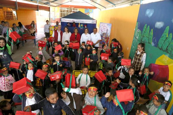 Posteriormente en el preescolar Ramón López Velarde, entregó loncheras y cilindros a niñas y niños, quienes vieron la obra de teatro guiñol creada para sensibilizar desde temprana edad sobre las adicciones, actividad que marcó el inicio oficial de las actividades de la campaña Por un Corazón sin Adicciones. Asimismo, estuvo con madres y padres de familia que asistieron a la plática sobre prevención y detección de adicciones.