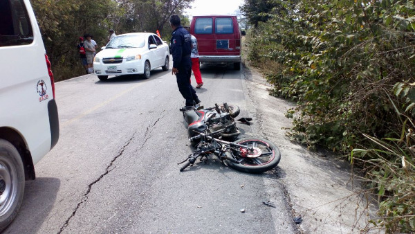 Los ocupantes de la moto, Adolfo Hernández Hernández de 19 años de edad, y Mario González Hernández de 16 años, con domicilio en el ejido San Antonio Huichimal, resultaron gravemente heridos.