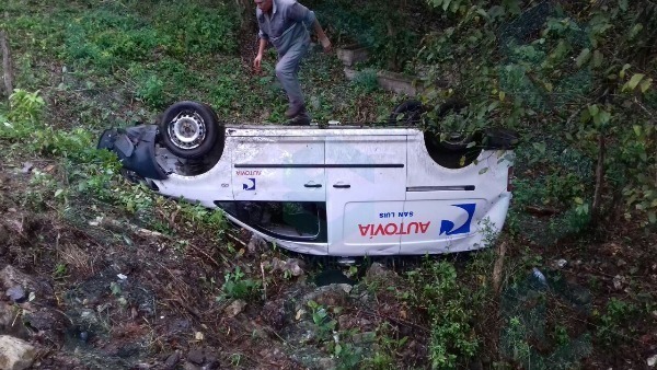 Una camioneta tipo panel color blanco, de la empresa Autovía, se volcó en el kilómetro 25 de la carretera libre a Rio Verde, por la localidad Santa Anita del municipio de Aquismón.