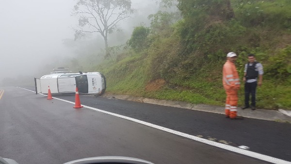 Debido a las malas condiciones climatológicas y a la falta de precaución, esta tarde se registró la volcadura de una camioneta marca Ford color blanco, de doble cabina, y de caja cerrada, propiedad de la empresa Global Transportes de Valores.