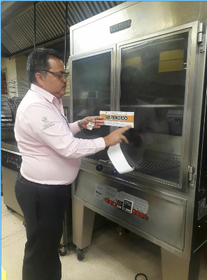 "Había un riesgo a la salud que representaba no conservar los alimentos preparados a una temperatura superior a los 60°C, por lo que procedimos a la suspensión total de la preparación y venta de pollo asado, frito o rostizado, así como levantarle una multa económica", indicó Carlos Aguilar Acosta.