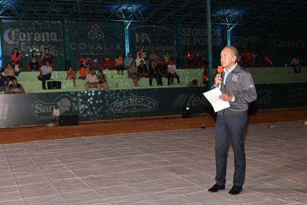 Asimismo, el mandatario estatal dio la bienvenida a los deportistas mexicanos y del extranjero que participan en esta justa deportiva, que se desarrolla en las canchas del Club Deportivo Potosino, a quienes "les deseo que disfruten de nuestra ciudad y de la cálida hospitalidad de las y los potosinos".