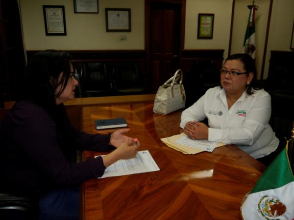 La nueva Presidenta Municipal después de la Sesión Extraordinaria de Cabildo empezó a atender a la población en la oficina y comenzó a revisar los pendientes que había. Dio la primera atención a la responsable de la Cámara Nacional de Comercio en Pequeño (CANACOPE) Alma Delia Torres, así como a otras personas que se acercaron a este despacho.