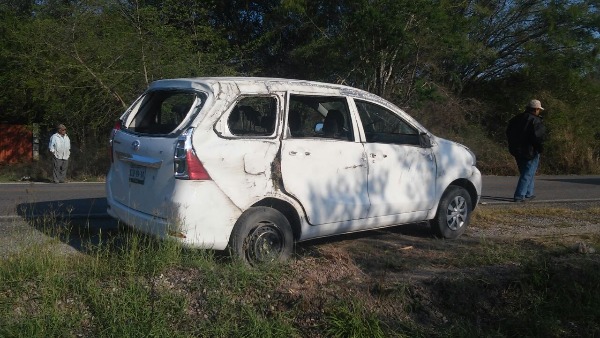 Una camioneta tipo panel color blanco, de modelo reciente, en la que al parecer viajaba una familia completa, se volcó esta mañana en el kilómetro 18 de la carretera federal Valles-Mante a la altura de la curva del Japonés.