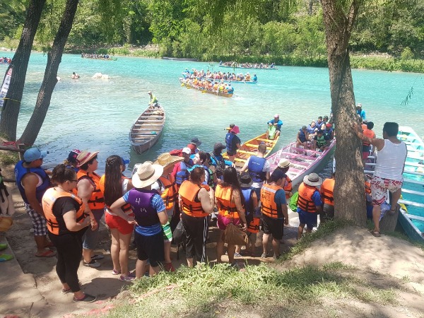 En el ejido La Morena y Tanchachín donde están las balsas que llevan a las Cascadas de Tamuín, los lancheros no se dan abasto.