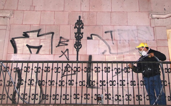 La Coordinación de Imagen Urbana inicio un operativo nocturno para remover el grafiti en la cantera de la capital, principalmente en el Centro Histórico para atacar con mayor intensidad esta problemática en los monumentos y edificaciones por actos vandálicos recurrentes.