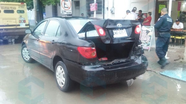 Le pegó a la parte trasera de un automóvil marca Toyota color negro, causándole daños cuantiosos.