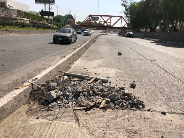Desde la semana pasada el carril fue cerrado por obras, sin embargo, los trabajos ya terminaron pero no se han llevado el escombro, lo que ha provocado ya algunos percances viales en este tramo de la vía rápida.