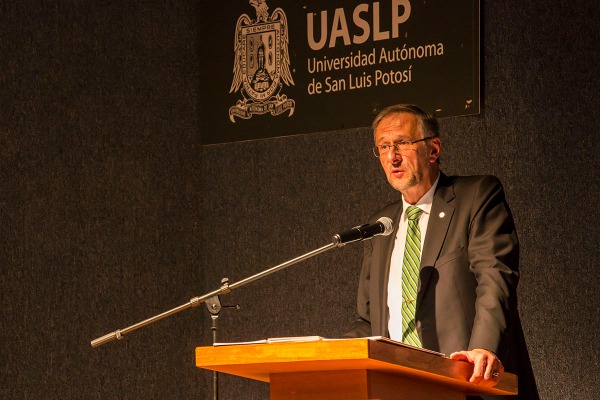 El directivo alemán agradeció a la UASLP todo el trabajo realizado por los estudiantes de la maestría en innovación comunicativa para las organizaciones que se imparte en la Facultad de Ciencias de la Comunicación.