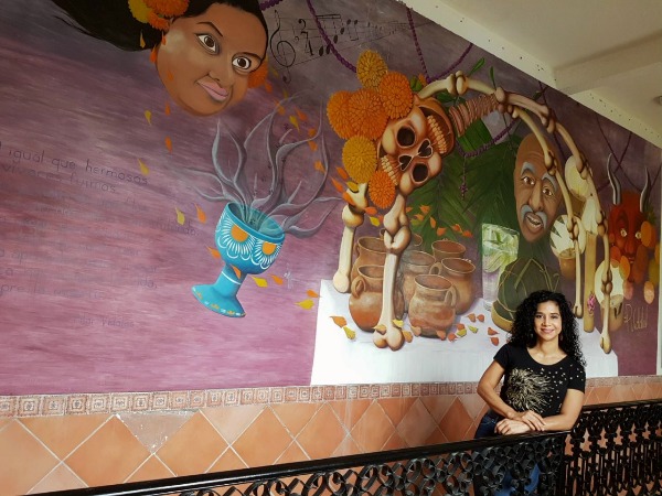 Pilar Vidales, artista y muralista huasteca participará en la Muestra Artística XXXIV de Ciudad Valles, por lo que el día de mañana realizará una visita guiada en el mural "Alegoría de Santorom" que se ubica al interior de la Presidencia Municipal de Ciudad Valles"