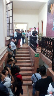 Alrededor de las 8 de la mañana alumnos y profesores se congregaron al interior de la Presidencia municipal para recibir este recorrido por el mural que la artista donara el año pasado a la comunidad vallense.