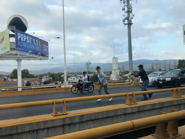 Entre los automovilistas se había nerviosismo y preocupación. Solo a unos cuántos les ganó la prisa, porque el resto de conductores al ver la bola de pelos blancos escurriéndose entre las llantas de autos, prefirieron abanderar y después de varios intentos rescatar al canino.