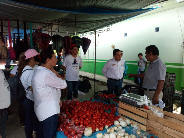 El candidato del PRI, Partido Verde y Conciencia Popular, Rafael Pérez, estuvo acompañado de la candidata a la Alcaldía por el PRI, Laura Téllez, recorriendo los puestos del mercado para saludar a los vendedores, y escuchando las necesidades.
