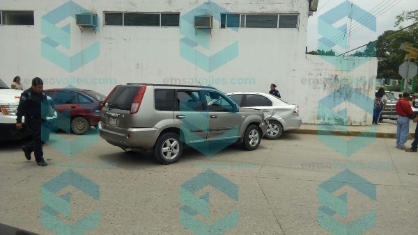 En la calle Juan Sarabia y Niños Héroes un automóvil marca Nissan color negro, chocó contra una camioneta Nissan color arena, y la proyectó contra un coche estacionado Aveo gris.